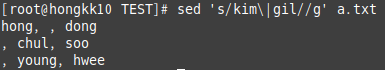 # sed 's/kim\|gil//g' a.txt