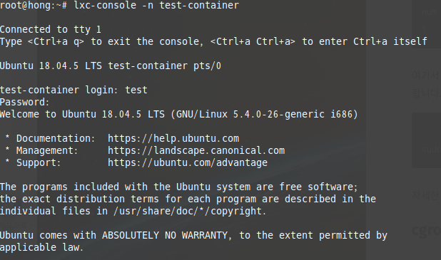 ※만약 콘솔에서 나가고 싶은경우 $에서 Ctrl + a → q (동시 입력 아님)