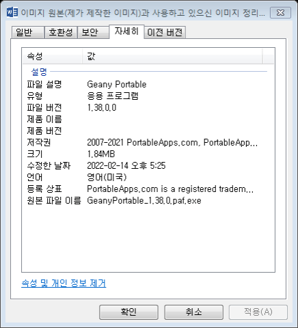 압축 해제 시 워드 문서처럼 위장하기 위해 파일의 아이콘이 워드 이미지로 설정되어 있다.